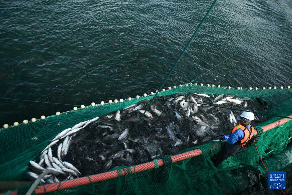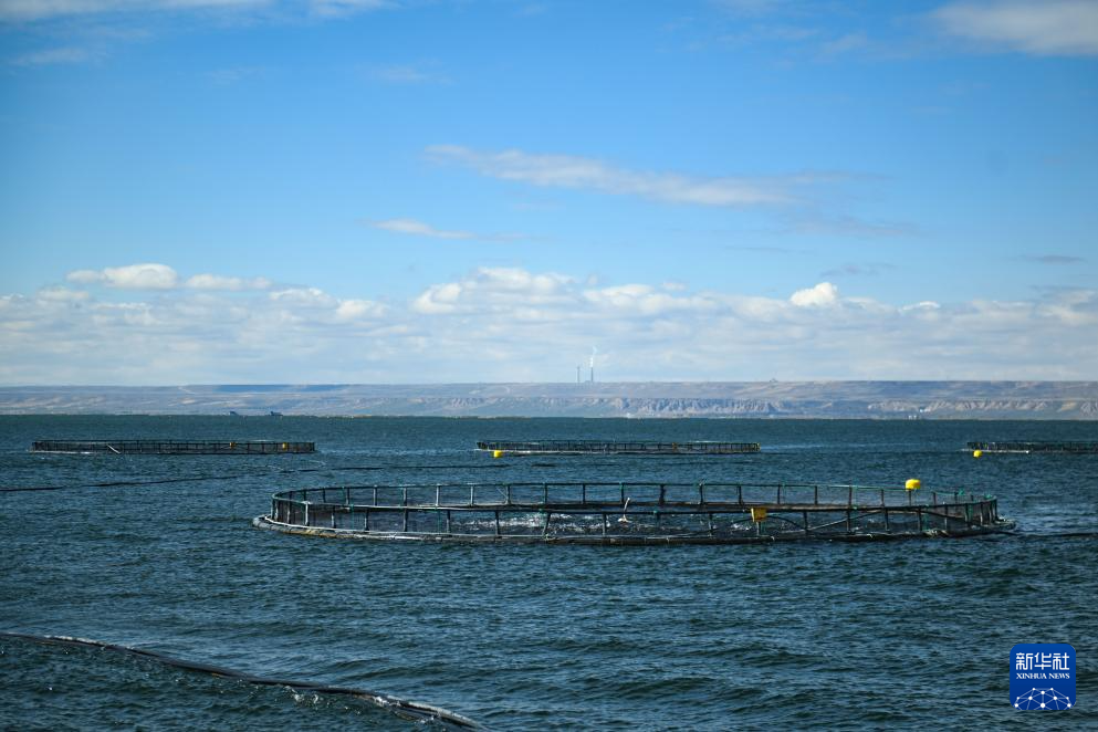 這是10月18日拍攝的龍洋知鮮(青海)股份有限公司養(yǎng)殖網(wǎng)箱。新華社記者 張龍 攝