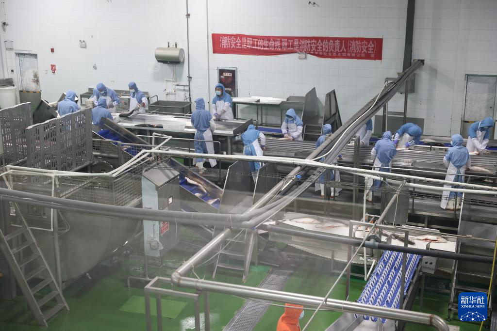 這是10月18日拍攝的龍洋知鮮(青海)股份有限公司冷水魚生產(chǎn)線。新華社記者 呂帥 攝