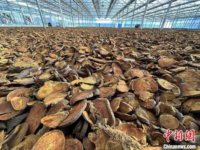圖為正在晾曬的藥材?!〈魑牟?攝