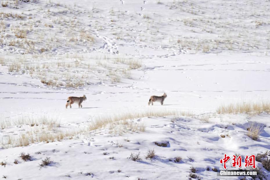 日前,在青海省海西州德令哈市尕海鎮(zhèn)陶哈村,攝影愛好者用鏡頭捕捉到兩只猞猁在雪山草地中悠然踱步的珍貴畫面。猞猁外形似貓,但比貓體形大,屬于中型猛獸,耳朵尖端長有黑色聳立的簇毛,是一種離群獨居的野生動物。近年來,隨著柴達木盆地生態(tài)保護力度加強,當(dāng)?shù)財z影愛好者時常在溝里鄉(xiāng)地區(qū)拍攝到雪豹、猞猁、兔猻、狼、巖羊等多種高原野生動物。圖為兩只猞猁在雪地里漫步。