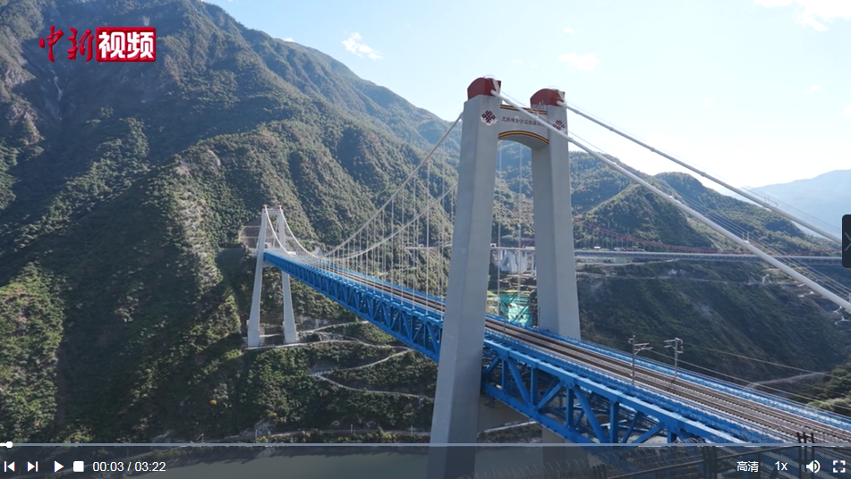 坐落于云南著名景區(qū)虎跳峽上的金沙江鐵路大橋是麗江至香格里拉鐵路(下稱“麗香鐵路”)的重點(diǎn)控制性工程,兩端分別連接玉龍雪山隧道和哈巴雪山隧道,全長882.5米,是世界首座大跨度鋼桁梁鐵路懸索橋。