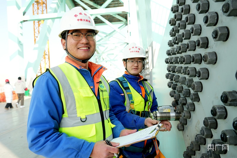 “扳手剛接觸螺栓顯示扭矩是100,再轉(zhuǎn)動一格半,顯示的就是檢測值?!焙斡呈炀毜叵蛴浾呓榻B檢測工作。冬日里,高原地區(qū),黃河之上,凌冽的寒風(fēng)似乎要比以往更刺骨一些,所以晴天的正午,正是施工的最佳時(shí)機(jī)。