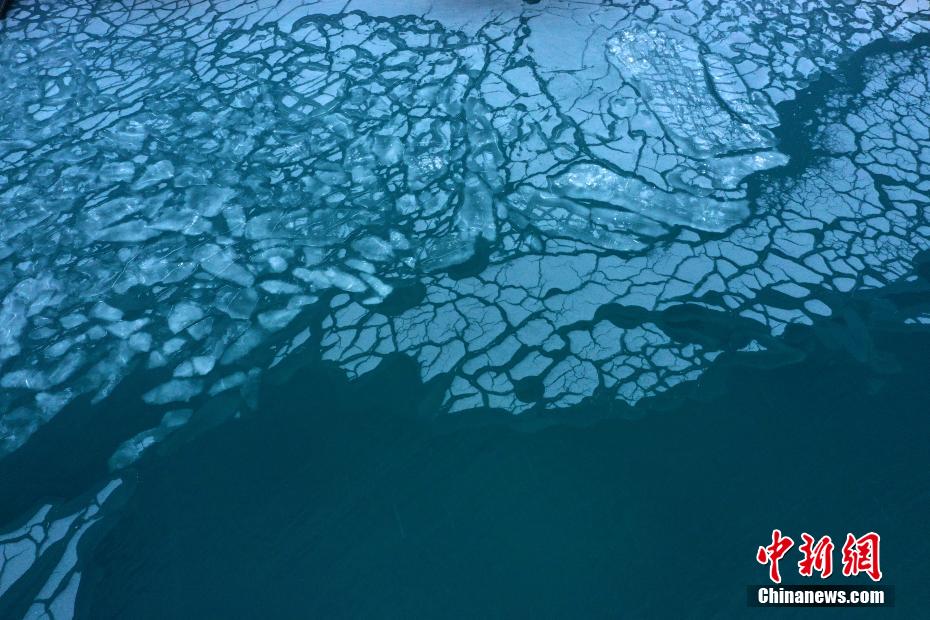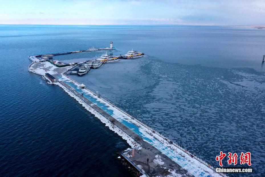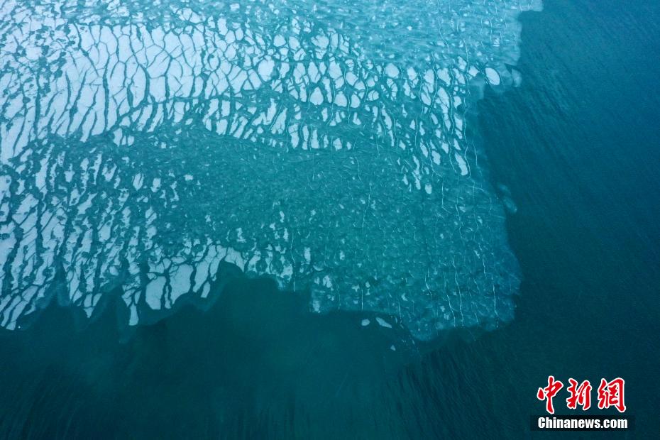 12月22日,航拍位于青海省海南州的青海湖二郎劍景區(qū),被譽為“高原明珠”的青海湖已經(jīng)出現(xiàn)冰凍現(xiàn)象,冰封玉砌成為冬日青海湖的美景,吸引游客前來觀賞。中新社發(fā) 張忠蘋 攝