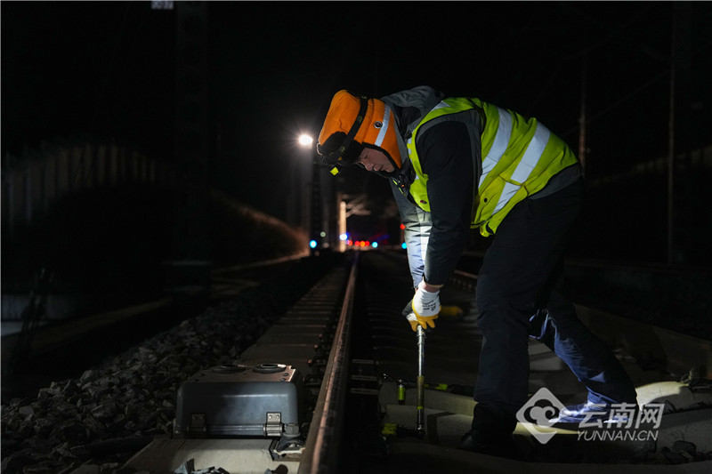 麗香鐵路地處高原,各站點(diǎn)晝夜溫差有近30℃,自然溫差越大對(duì)設(shè)備測(cè)溫穩(wěn)定性的挑戰(zhàn)越大。趙麗程和工友們要在天窗時(shí)間內(nèi)對(duì)設(shè)備的100余項(xiàng)全流程參數(shù)進(jìn)行逐一核對(duì)調(diào)整,確保精確到0.01以上。即使是簡單的螺栓緊固,他們也要用專業(yè)扳手準(zhǔn)確把握力矩,太緊太松都會(huì)影響設(shè)備整體性能。由于高原缺氧,不一會(huì)趙麗程和工友們的呼吸就變得急促起來,呼出的陣陣熱氣在頭燈的照射下如煙一般散開。