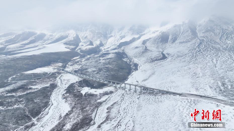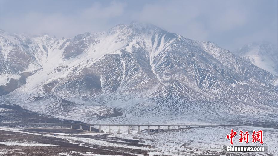 2月22日,鐵路列車從祁連山下行駛。一場春雪過后,青海省海北藏族自治州門源縣境內(nèi),連綿不絕的祁連山脈被白雪覆蓋,大地銀裝素裹,靜謐純凈,盡顯壯美山川。中新社記者 馬銘言 攝