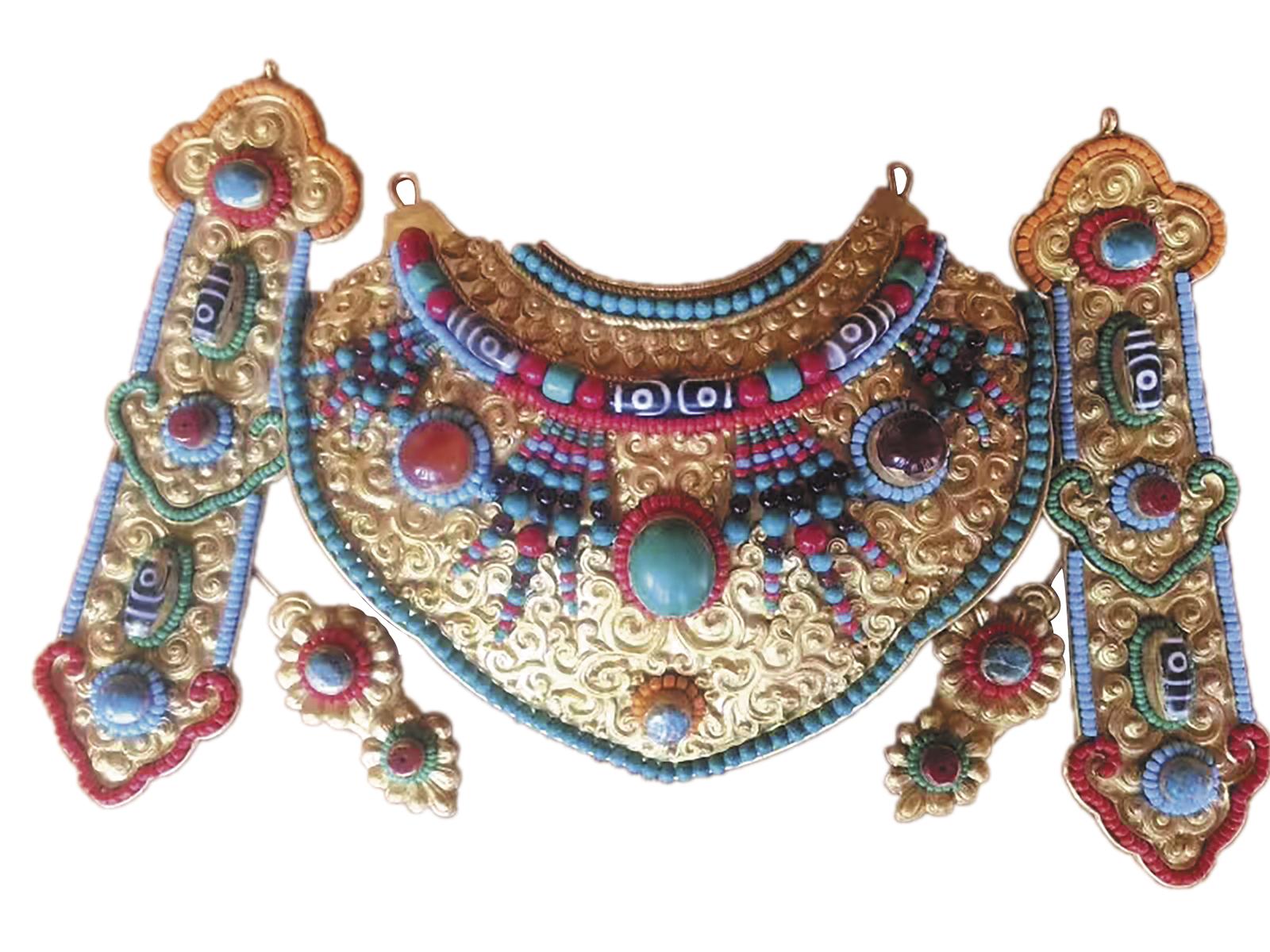 金屬塑像上的項飾與耳飾。