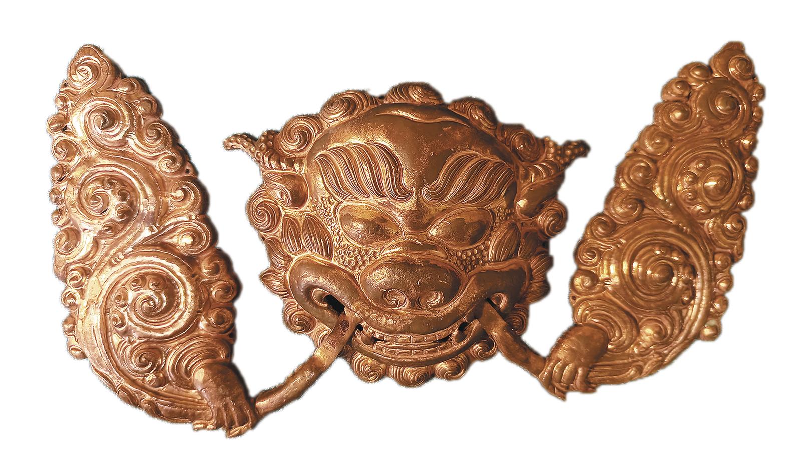 溶金技藝,簡單來說就是將黃金放入水銀中,形成溶液,然后將其涂在銀、銅等金屬的表面,再用火烤,水銀會被燒成黑色,黃金則會保留在表面,再經(jīng)過涼水沖洗和打磨后,金屬表面就會金黃發(fā)亮。因水銀揮發(fā)時有毒性,因此全程需佩戴防護面罩。