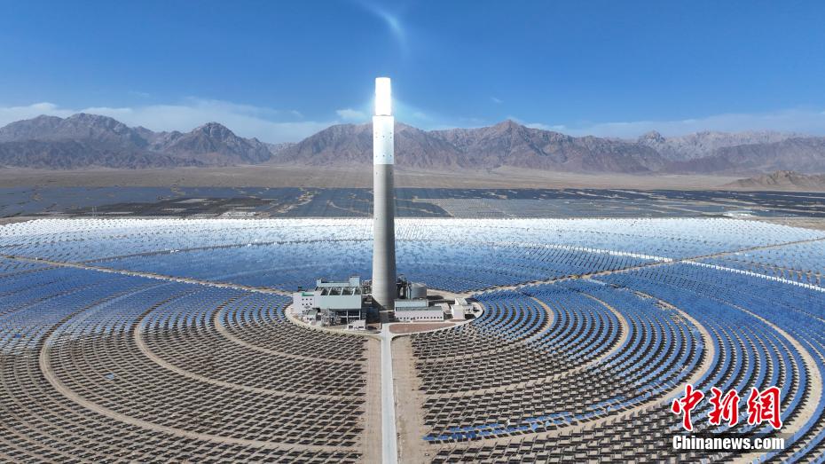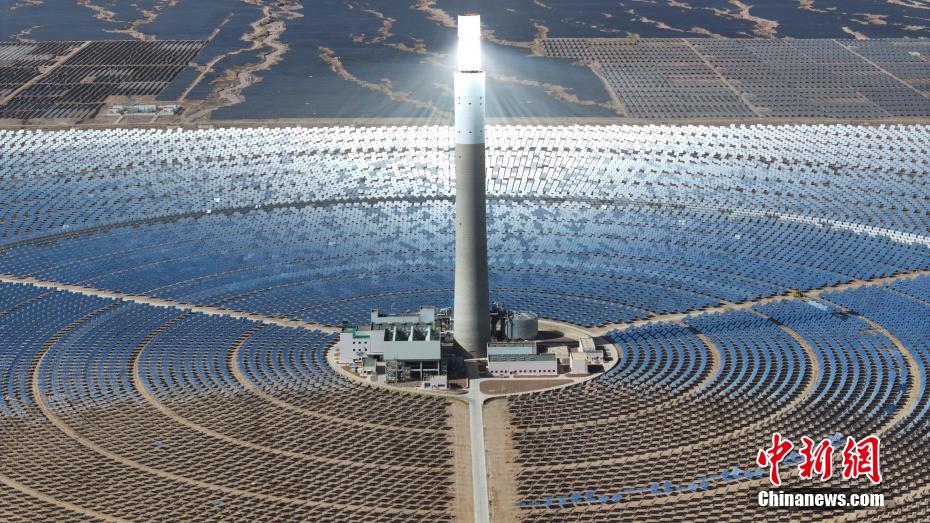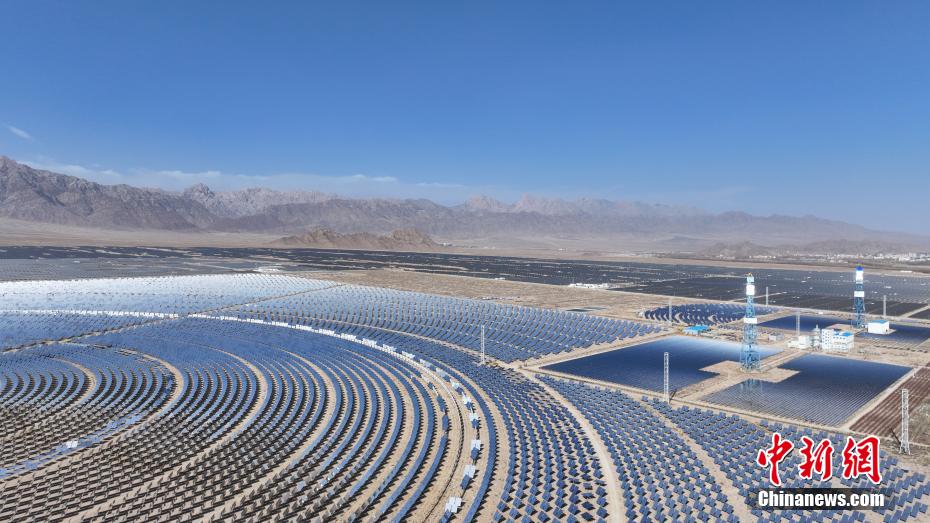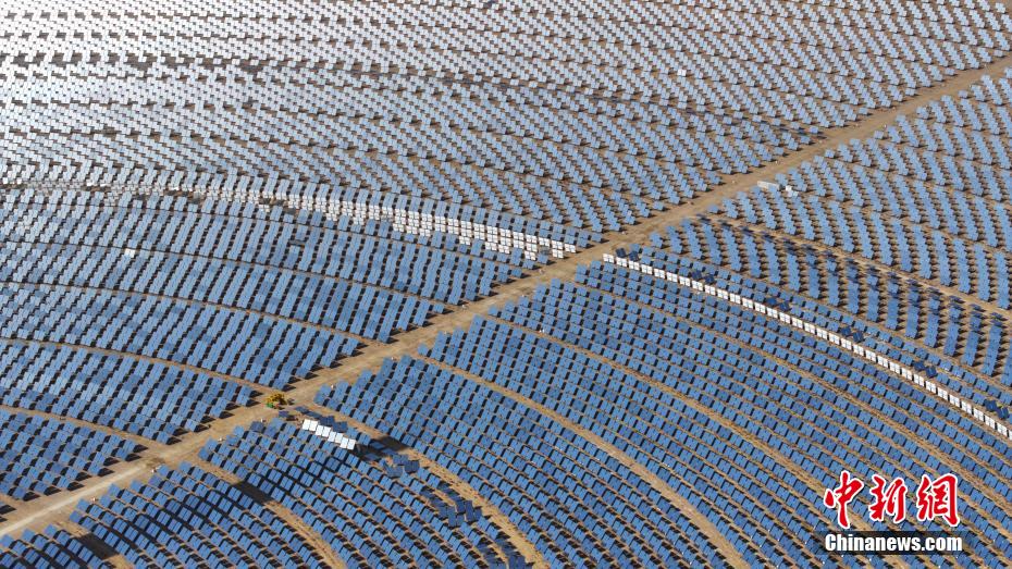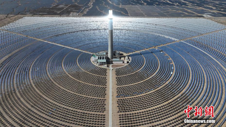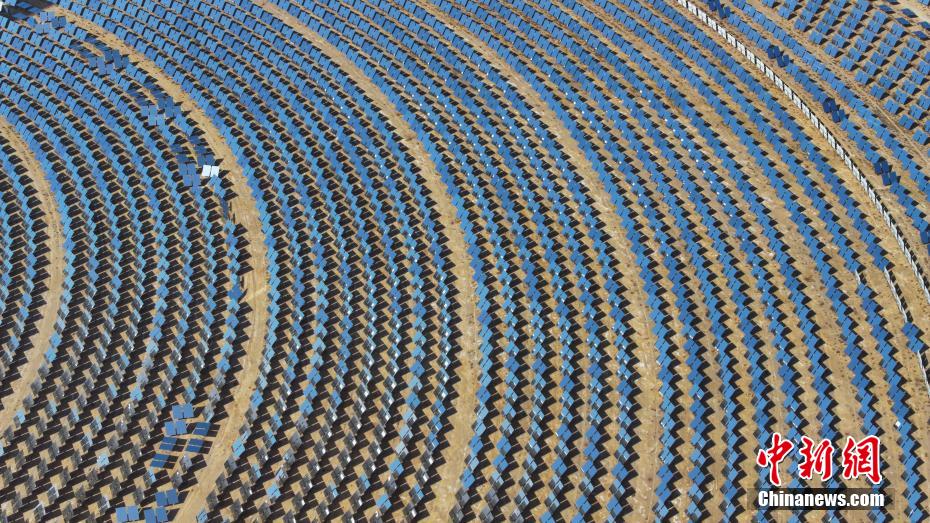 4月15日,航拍位于青海省海西蒙古族藏族自治州德令哈市境內(nèi)的青海中控50MW光熱電站,如戈壁灘上的“藍(lán)色海洋”。該光熱電站是中國(guó)首批光熱發(fā)電示范項(xiàng)目之一,也是全球首個(gè)年發(fā)電量超過年設(shè)計(jì)發(fā)電量的塔式熔鹽儲(chǔ)能光熱電站。裝機(jī)容量達(dá)50MW,鏡場(chǎng)采光面積達(dá)54.27萬平方米,配置有7小時(shí)熔鹽儲(chǔ)能系統(tǒng),每年可節(jié)約標(biāo)準(zhǔn)煤約4.8萬噸,減排二氧化碳?xì)怏w約12.4萬噸。(無人機(jī)照片)中新社記者 馬銘言 攝