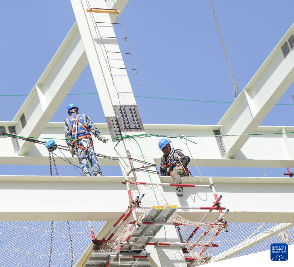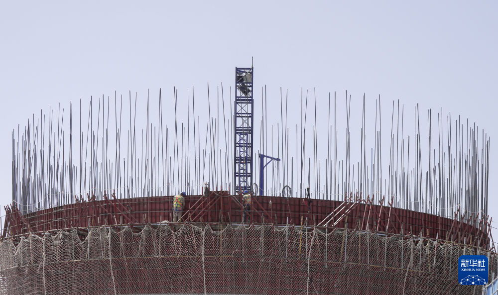 4月15日,工人在青海華電格爾木一期2×660兆瓦煤電項(xiàng)目建設(shè)現(xiàn)場施工。新華社記者 解統(tǒng)強(qiáng) 攝