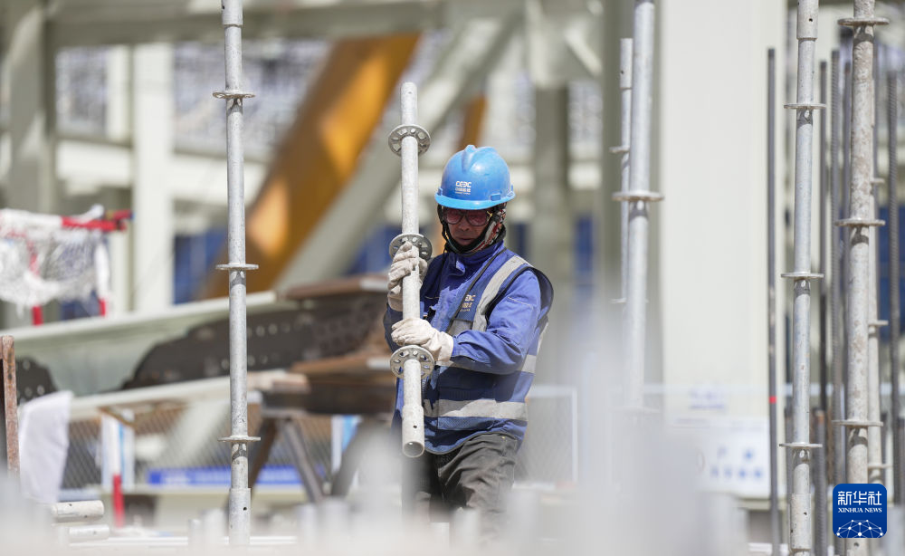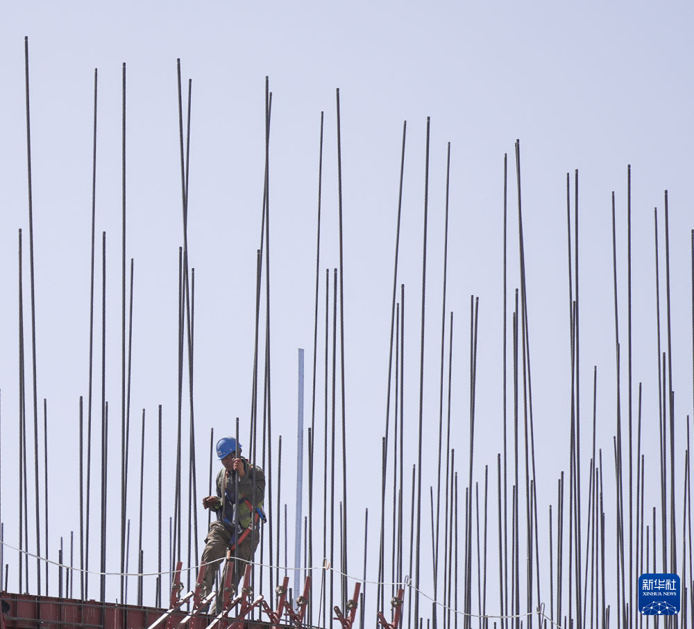 4月15日,工人在青海華電格爾木一期2×660兆瓦煤電項(xiàng)目建設(shè)現(xiàn)場施工。新華社記者 杜笑微 攝