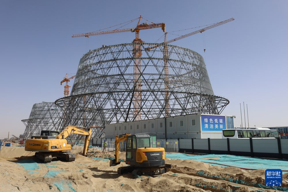 4月15日拍攝的青海華電格爾木一期2×660兆瓦煤電項(xiàng)目建設(shè)現(xiàn)場。新華社記者 解統(tǒng)強(qiáng) 攝