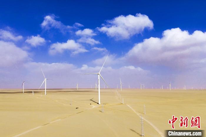 4月15日,位于青海省海西蒙古族藏族自治州大柴旦行委錫鐵山鎮(zhèn)境內(nèi)的大柴旦100萬千瓦風(fēng)光儲(chǔ)項(xiàng)目30萬千瓦風(fēng)電工程。(資料圖,無人機(jī)照片) 馬煜赟 攝