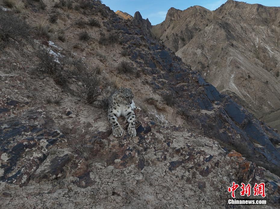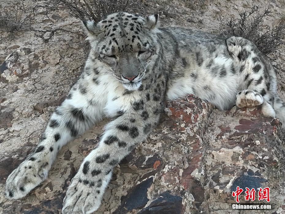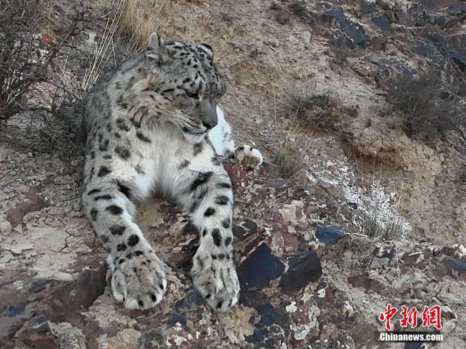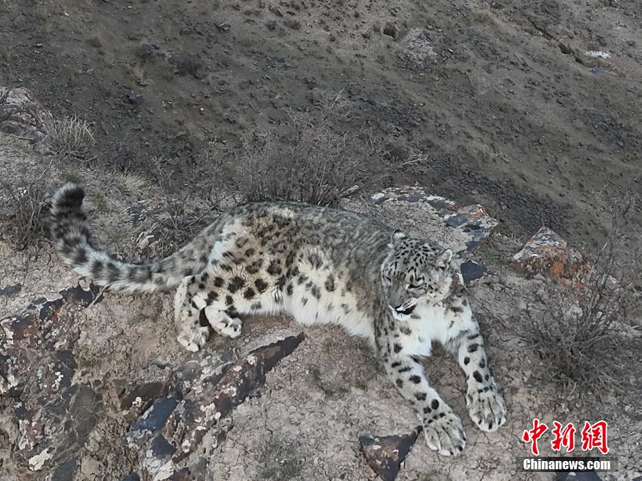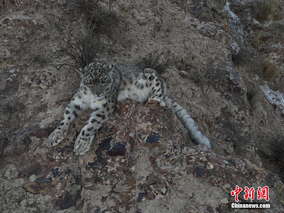青海省海西蒙古族藏族自治州都蘭縣委宣傳部3日消息,該縣牧民旦知尖措5月1日在熱水鄉(xiāng)放牧?xí)r,用無人機近距離拍攝到國家一級保護動物雪豹休憩的珍貴影像。(無人機照片)旦知尖措 攝