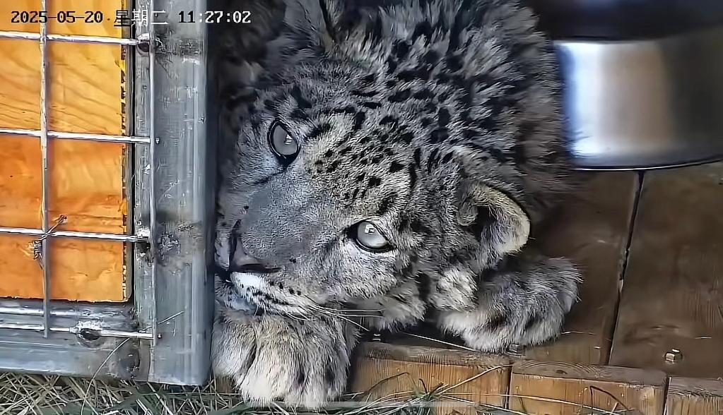 經過緊張有序的治療,這只小雪豹的身體有所好轉。3月8日,“凌小蟄”第一次抬起了頭,望向外面的世界。