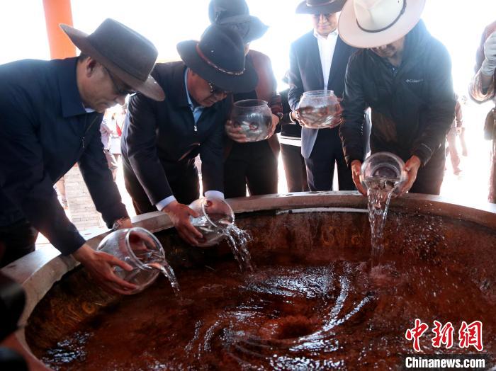 當(dāng)日,位于青海湖北岸的青海省海北藏族自治州剛察縣舉辦2025年第十七屆青海湖裸鯉增殖放流暨觀魚(yú)季啟動(dòng)活動(dòng),民眾將100萬(wàn)尾青海湖裸鯉魚(yú)苗放流至青海湖入湖河之一的沙柳河中。