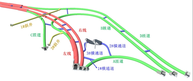 為了實現(xiàn)交通轉換,這座“T”形樞紐包含了主線特長隧道1座,其中左線長度3025米,右線長度3050米;4座匝道隧道,最長的匝道超過1400米。