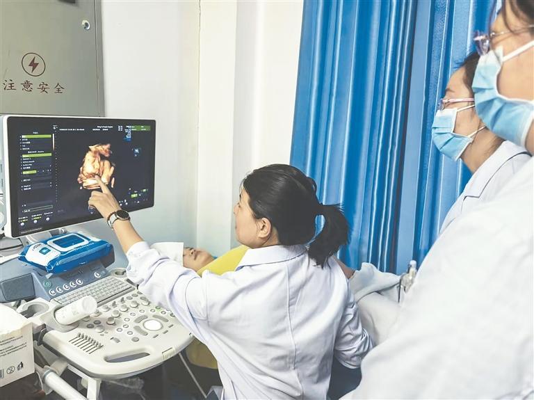 朱悠悠醫(yī)師為茫崖醫(yī)務(wù)人員講解三維超聲下胎兒面部結(jié)構(gòu)細(xì)節(jié),助力提升診斷精準(zhǔn)度。冉志敏 攝