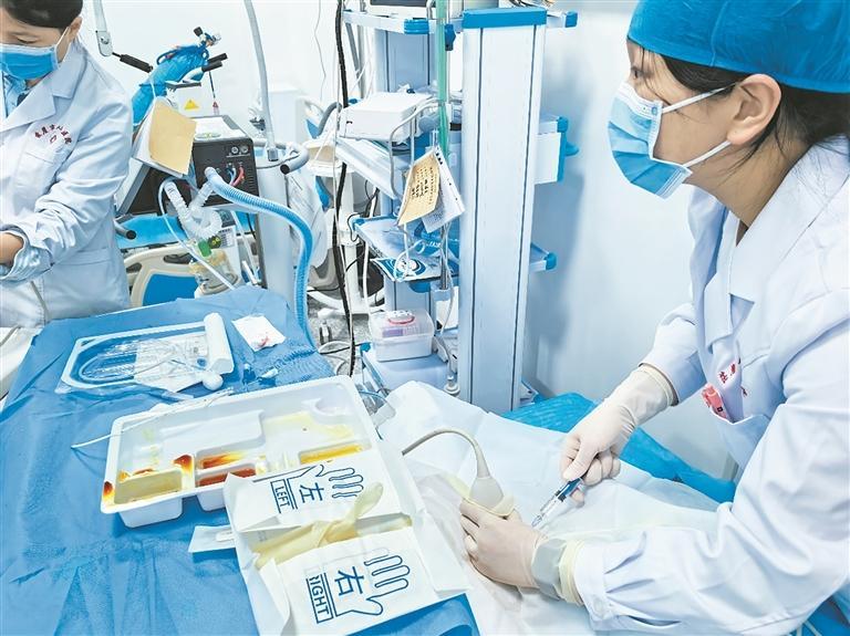 浙江臺(tái)州援青醫(yī)生徐盼盼正全神貫注為患者穿刺。冉志敏 攝