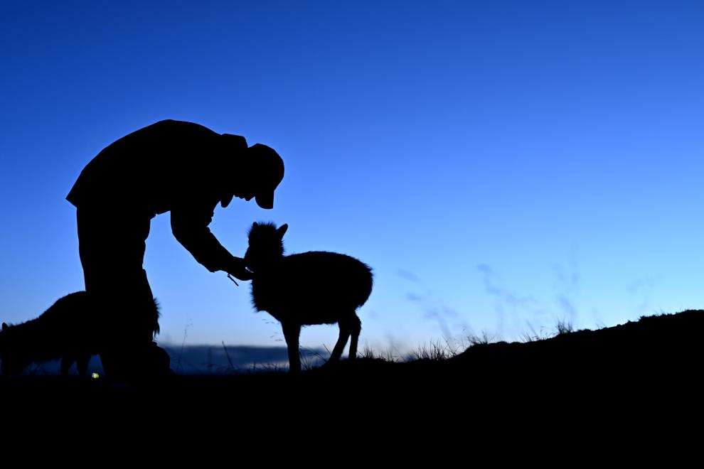 可可西里管理處索南達(dá)杰保護(hù)站,巡山隊(duì)員與被救助的藏羚羊幼仔在一起。新華社記者 張宏祥 攝
