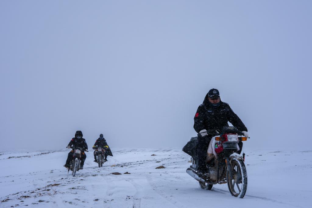巡山隊員在可可西里卓乃湖附近巡護。新華社記者 杜笑微 攝