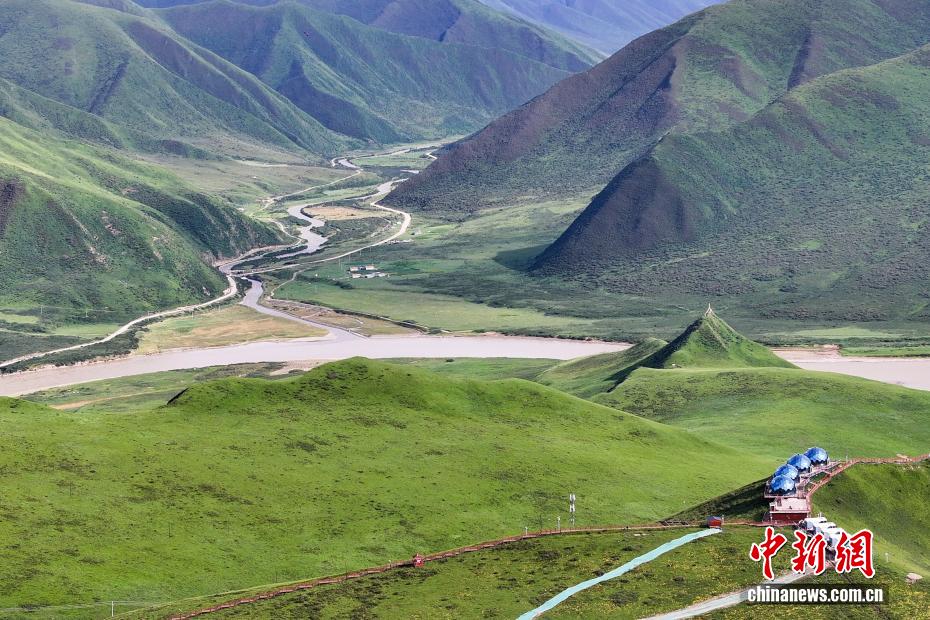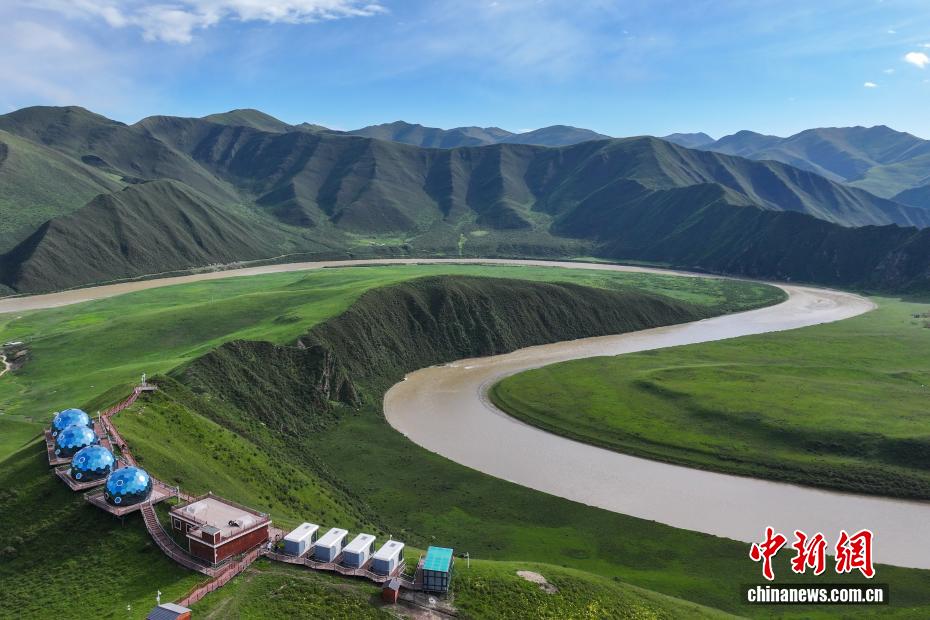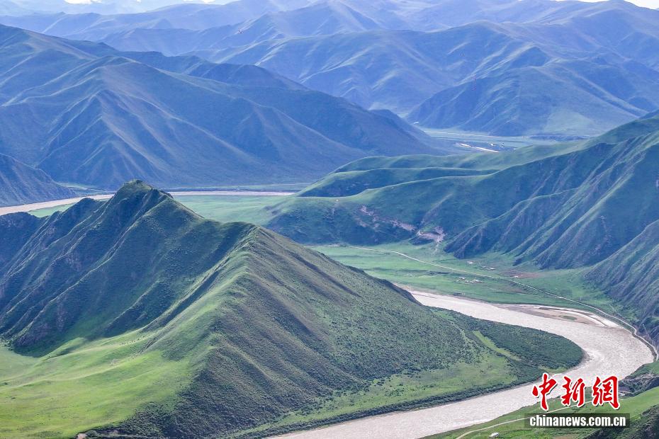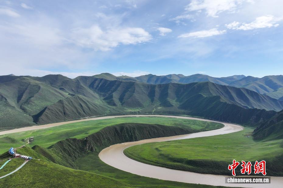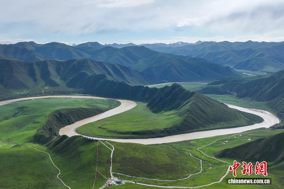 8月14日,航拍位于青海省果洛藏族自治州久治縣境內(nèi)的黃河女兒灣。久治縣是長(zhǎng)江、黃河兩大水系的涵養(yǎng)區(qū),是“中華水塔”的重要組成部分。中新社記者 薛蒂 攝