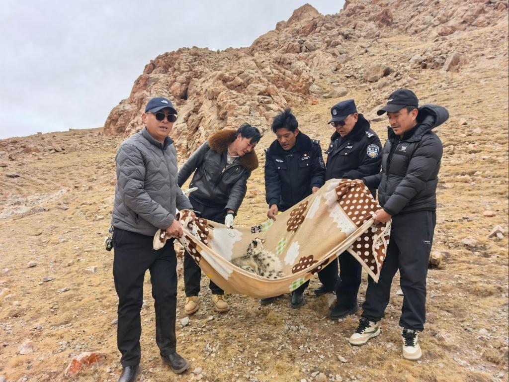 雪豹“凌小蟄”救護(hù)現(xiàn)場。(青海野生動物救護(hù)繁育中心供圖)