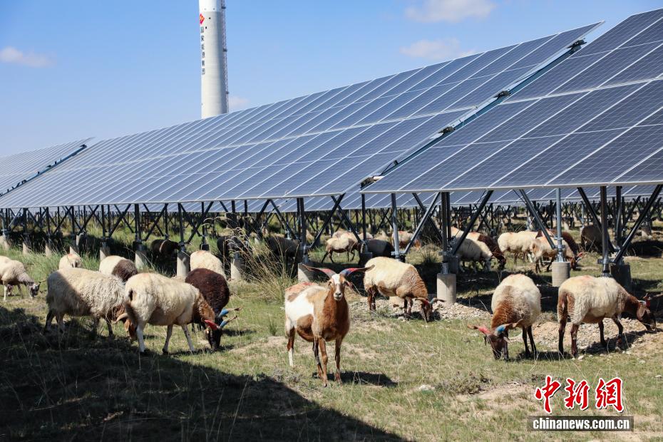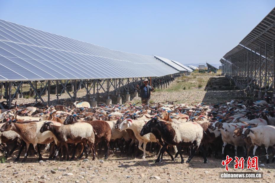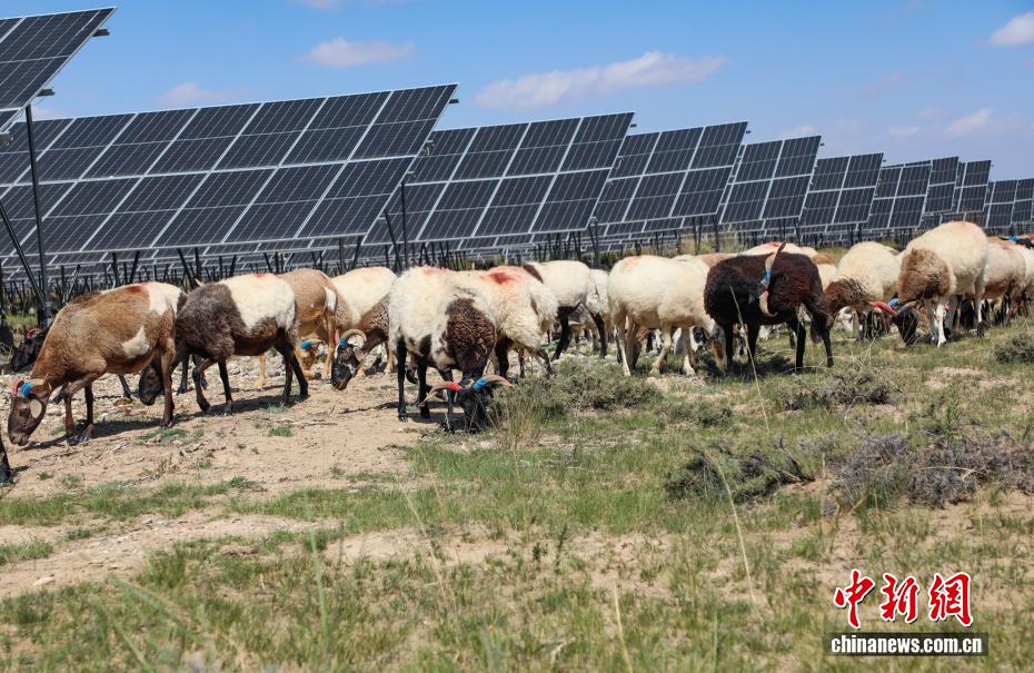 9月17日,羊群在光伏板下吃草。中新社記者 馬銘言 攝