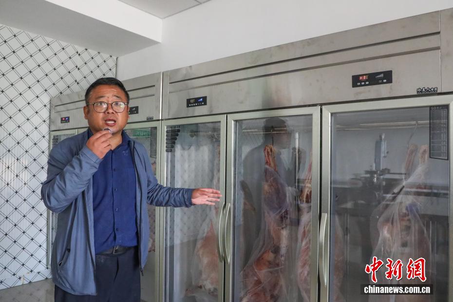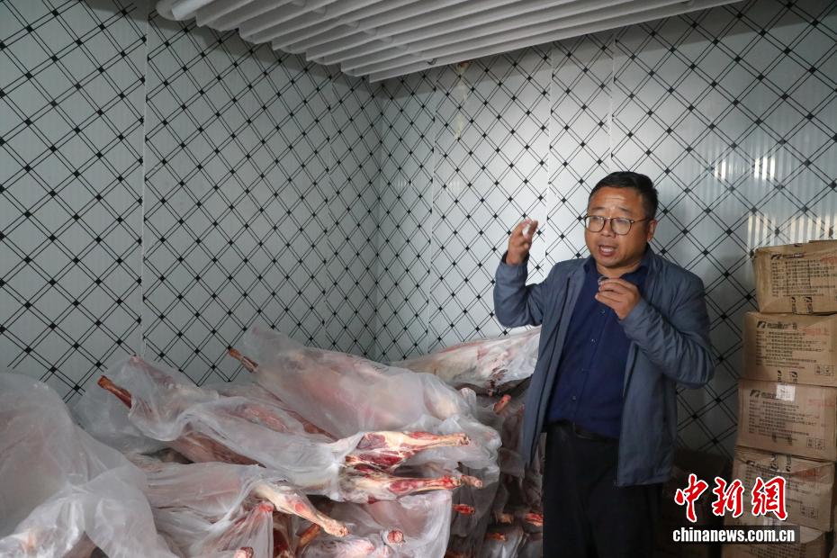 9月17日,共和縣一家“光伏羊”銷售商家展示冷凍儲存的羊肉。中新社記者 馬銘言 攝