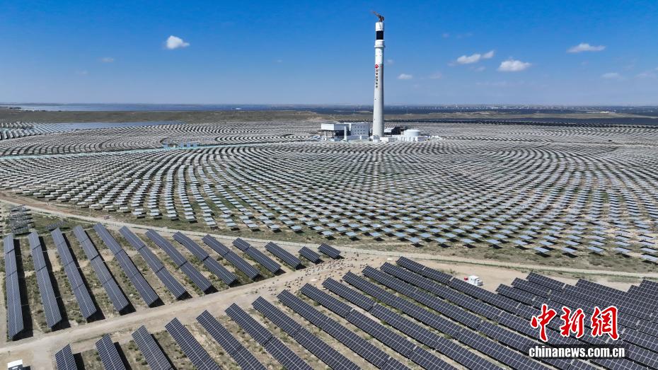 9月17日,航拍園區(qū)內(nèi)的“光伏羊”。(無人機照片)中新社記者 馬銘言 攝
