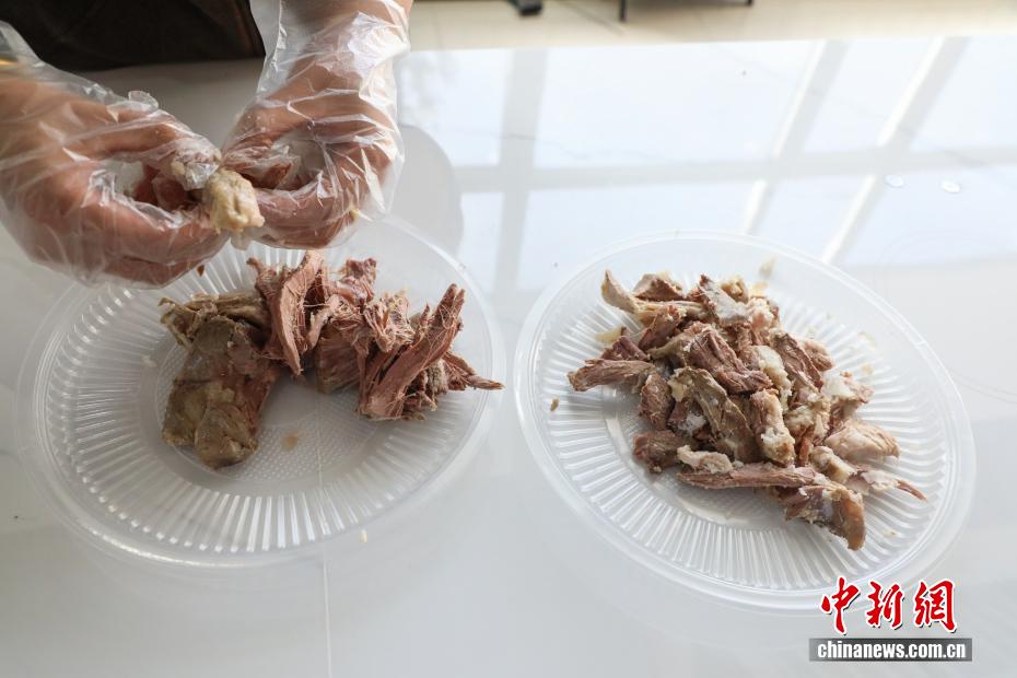 9月17日,共和縣一家“光伏羊”銷售商家展示煮好的羊肉。中新社記者 馬銘言 攝