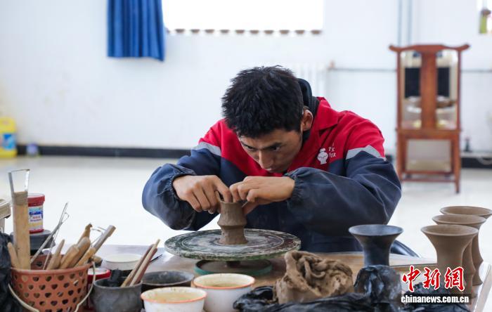 圖為匠人正在制作班瑪黑陶。中新社記者 馬銘言 攝