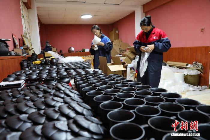 圖為匠人正在打包即將出售的班瑪黑陶。中新社記者 馬銘言 攝