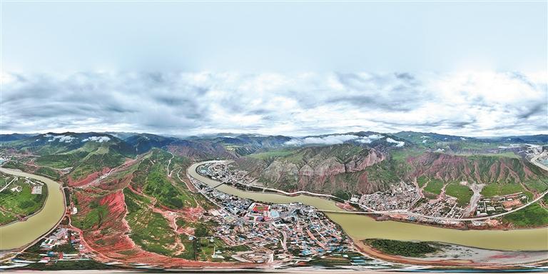 這里是黃河流經(jīng)的青海省果洛藏族自治州瑪沁縣拉加鎮(zhèn),地處黃河谷地,海拔較低,氣候宜人,被譽(yù)為“果洛小江南”。黃河蜿蜒穿過(guò)拉加鎮(zhèn),阿尼瑪卿山脈與紅土山共同守護(hù)著這片寧?kù)o的土地。