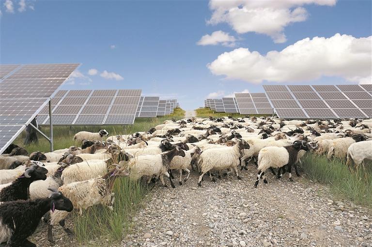 如今,站在這片熟悉的土地上,葉多眼前的景象早已天翻地覆。深藍色的光伏板如海洋般鋪展,在陽光下熠熠生輝,板下羊群悠然覓食。曾經(jīng)的荒漠,正悄然孕育著一場生態(tài)與經(jīng)濟共生的奇跡。而葉多,也從一名傳統(tǒng)牧民,轉(zhuǎn)型為“光伏牧民”,成為這場變革中最鮮活的主角。