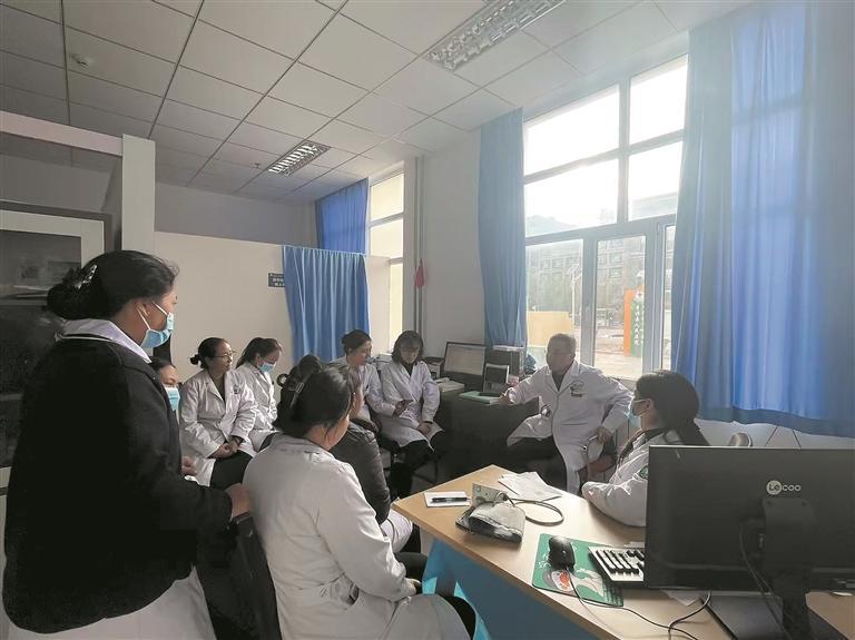 在囊謙縣人民醫(yī)院的遠程會診中心內(nèi),梁海峰正帶著院里的骨干醫(yī)生與首都醫(yī)科大學(xué)附屬復(fù)興醫(yī)院進行一場跨越千里的“云端”培訓(xùn)。培訓(xùn)結(jié)束后,顧不上休息,梁海峰又快步來到內(nèi)科診室,此時門外已有很多等候的患者。