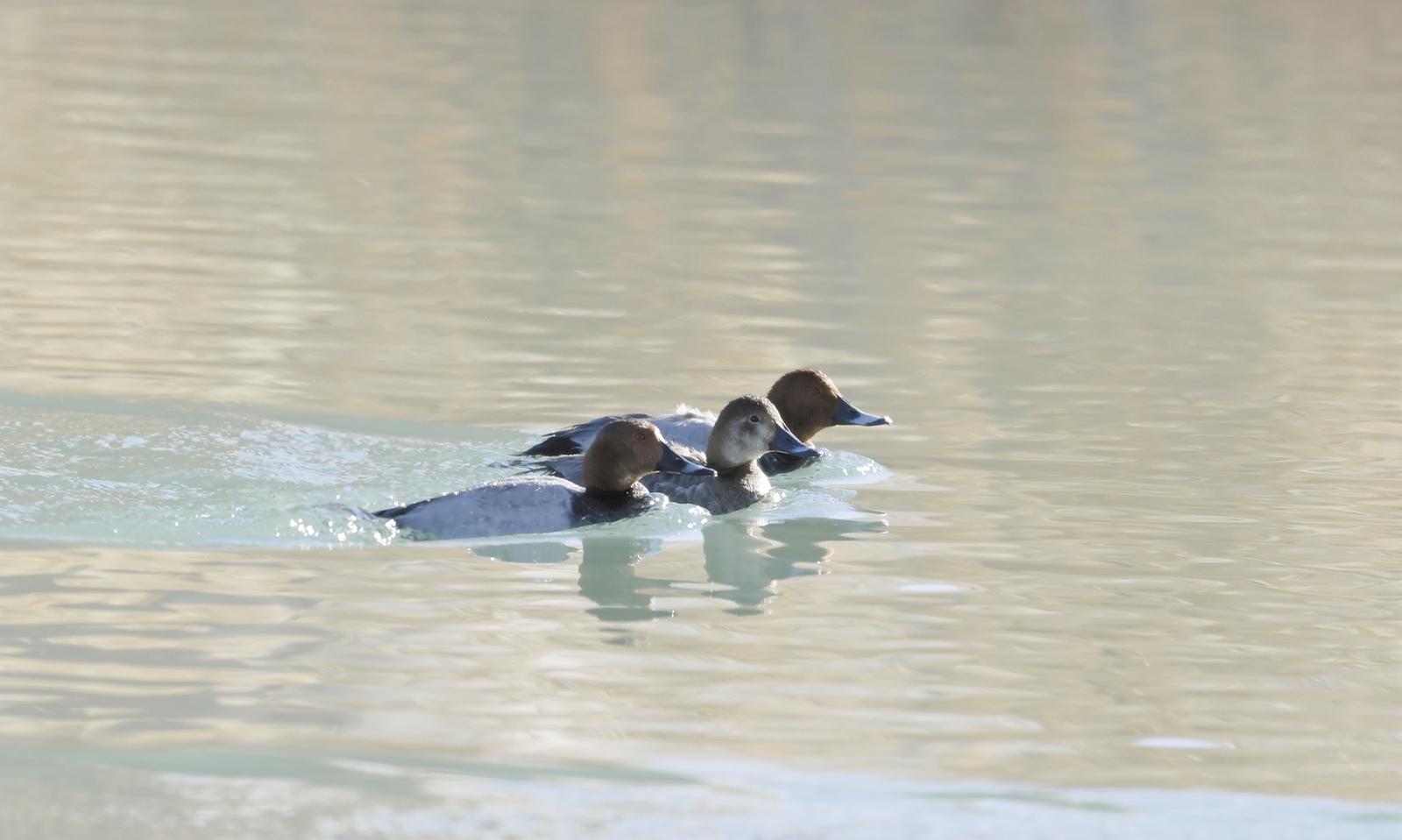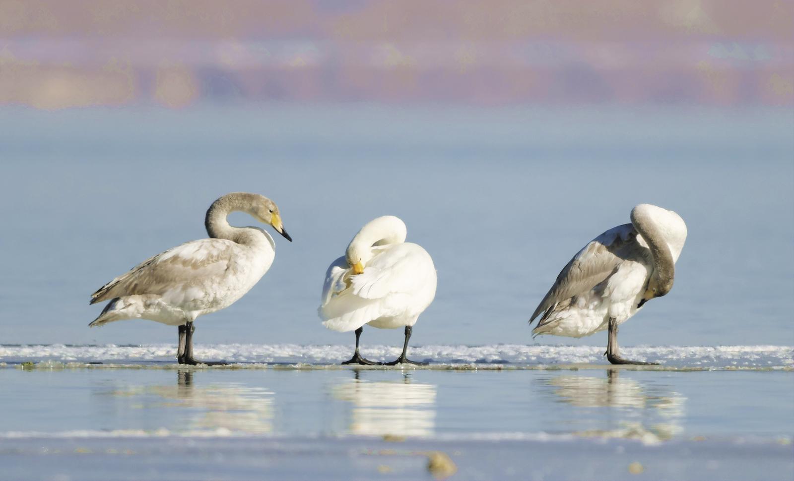 認真記下可魯克湖的鳥種和數(shù)量,我們收拾好設備往托素湖趕。出人意料的是,托素湖的水鳥熱鬧程度絲毫不輸可魯克湖。大天鵝和赤嘴潛鴨混在一起,像老朋友似的和睦相處,有的在水里穿梭覓食,有的并肩游曳,湖面上好不熱鬧。