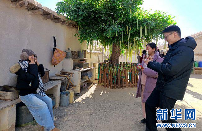 游客在柯魯柯鎮(zhèn)沉浸式影視文旅基地內(nèi)參觀體驗(yàn)。新華網(wǎng) 蔡得軍 攝