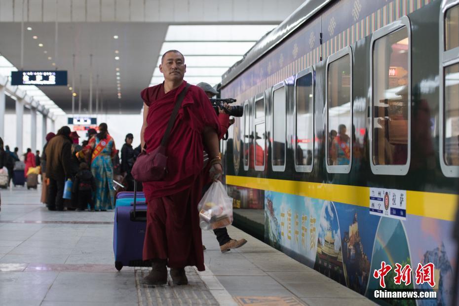 2月1日,西藏拉薩火車站迎來2018首個春運日。拉薩站當(dāng)天發(fā)客量5000多人次,旅客多以返鄉(xiāng)務(wù)工人員、學(xué)生為主,其中乘坐到成都、廣州等方向的旅客人數(shù)最多。初步統(tǒng)計,今年春運拉薩站將輸送旅客約16.5萬人次,日均發(fā)客量約4200人次。圖為拉薩站,一名僧人即將上車。中新社記者 何蓬磊 攝