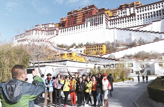 4月的拉薩春意盎然,跟隨春的腳步而來的是日漸增多的游客,近日,拉薩市各主要景點(diǎn)和風(fēng)景名勝區(qū)內(nèi)人頭攢動(dòng)。記者在布達(dá)拉宮廣場(chǎng)看到,游客或身著藏民族服飾合影留念,或穿行于廣場(chǎng)公園賞花游玩,或湖面泛舟感受垂柳映春水的意境。圖為游客們?cè)诓歼_(dá)拉宮前合影留念。巴桑次仁攝