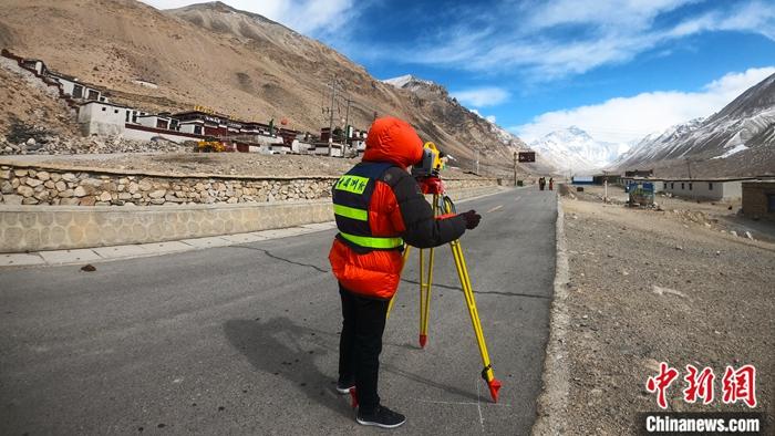 圖為4月3日,在西藏日喀則市定日縣,國(guó)測(cè)一大隊(duì)精密水準(zhǔn)測(cè)量工作即將推進(jìn)至珠穆朗瑪國(guó)家公園。 中新社發(fā) 魏軍輝 攝