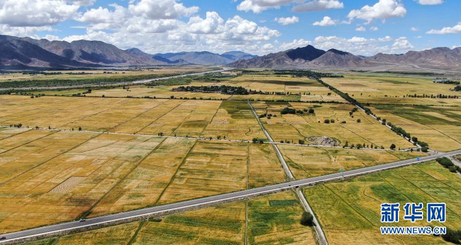 俯瞰西藏日喀則市白朗縣的農(nóng)田(2019年8月31日攝,無(wú)人機(jī)照片)。新華社記者 晉美多吉 攝