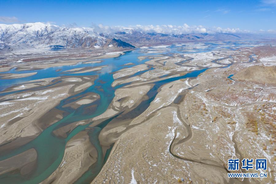 這是2020年3月24日拍攝的雅魯藏布江雪景(無(wú)人機(jī)照片)。新華社記者 普布扎西 攝