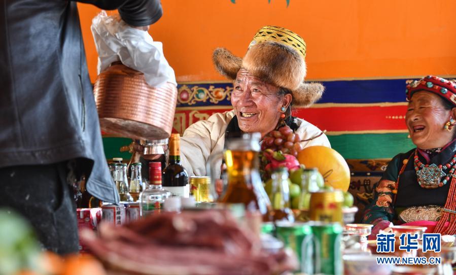 當(dāng)日,西藏日喀則迎來農(nóng)家新年。在位于薩迦縣扯休鄉(xiāng),毗鄰318國道的嘎吉林村安置點,村民們歡度搬遷新居后的第一個新年。