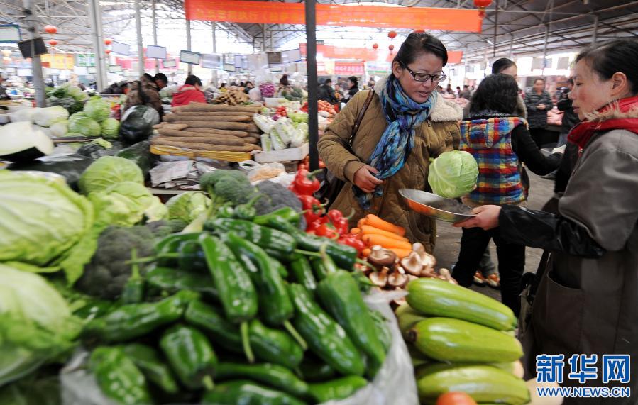 拉薩市民次仁拉姆(左)在菜市場(chǎng)買菜(2010年11月25日攝)。新華社記者 覺果 攝