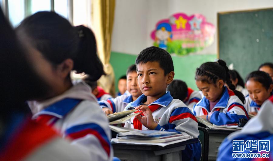 西藏昌都市實(shí)驗(yàn)小學(xué)六年級(jí)四班的學(xué)生在上藏語課(2020年10月5日攝)。新華社記者 晉美多吉 攝