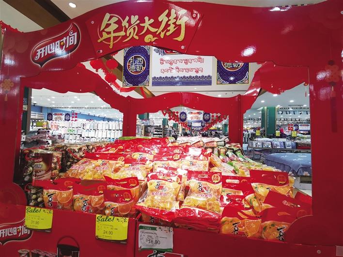 隨后,記者來到娘熱路的哈達購物廣場,超市里掛起的大紅燈籠和播放的“恭喜發(fā)財”、“歡樂過大年”等音樂,給商場增添了不少喜慶,而來這里采購年貨的人也不少!過年備什么年貨,吃什么好吃的,這是大家最為關(guān)心的事情。記者看到,超市里堆滿了各種各樣的零食大禮包、糖果、飲料。除了零食糖果,風(fēng)干肉、香腸、臘肉等這些過年餐桌上必不可少的年味,早已經(jīng)放上貨架等待市民選購。