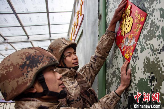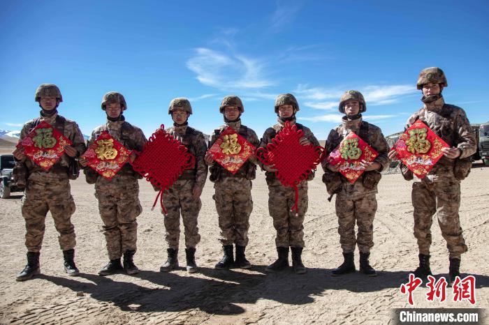 執(zhí)勤點上的官兵們,用“福”字、中國結(jié)將保溫方艙精心點綴裝飾,把祝福和期許默默留在心間?!耙患也粓A,萬家團圓?!瘪R雪建是官兵中唯一的零零后戰(zhàn)士,他表示:“一身戎裝接過送來的‘福’字,便是扛下了肩上的使命與責任,戰(zhàn)位上的新年就是邊關(guān)軍人的守望?!?/p>