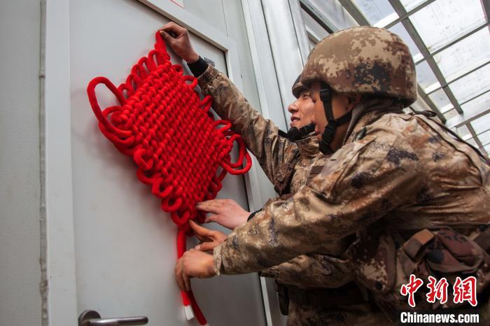 該旅官兵正在用中國結(jié)點綴裝飾保溫方艙?!⊥跏鰱| 攝