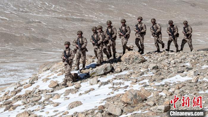 任務(wù)分隊官兵正在巡邊?!⊥跏鰱| 攝