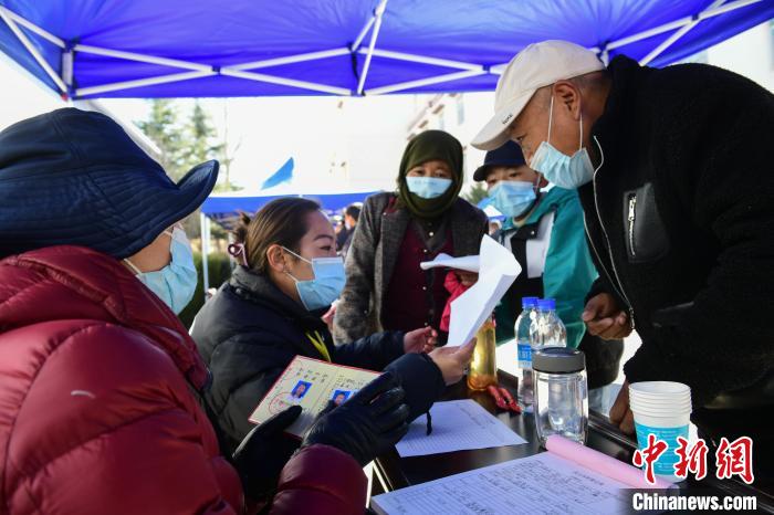 圖為用人企業(yè)代表(左)登記求職者個(gè)人信息。貢嘎來(lái)松 攝